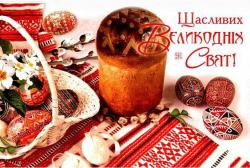 Нехай ваші душі будуть багаті на добро, як святковий стіл, чисті як Великодній рушник і веселі, як українські писанки. Хай малинові дзвони Великодня принесуть у вашу оселю радість, віру, надію і любов.